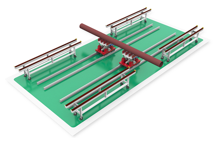 三、 性能特点:可取代翻转机构;可安全平稳快速地实现管子的横向输送;2-3个双丝杆四导柱输送小车;2-3条18#轻轨轨道;电动升降、电动行走;变频无级调速;控制台手动控制(无线摇控选配)。