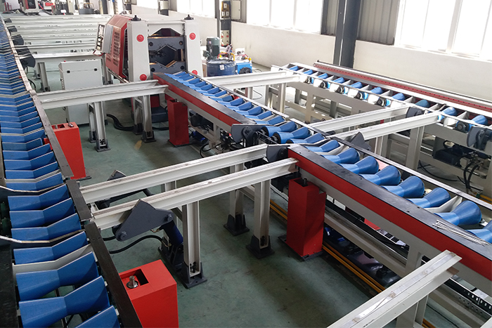 三、性能特点:独立或共用1套液压站;2-3个液压缸;3-7套特殊形状的爪子,可同时实现档料和翻转上料功能;配套工位架顶面有倾斜度;安装在纵向输送系统上,快速完成管子上料;减少对人的依赖,大大提高物流效率;控制台手动控制(无线摇控选配)