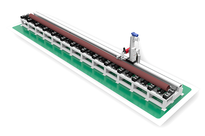 三、 性能特点:等离子或/和火焰切割、内置电动辊轮输送系统、3排包不锈钢小轮子或2排包不锈钢大轮子组成的滚床式结构、伺服电机+减速机驱动、PLC数控切割系统控制、人机界面数控定长切割