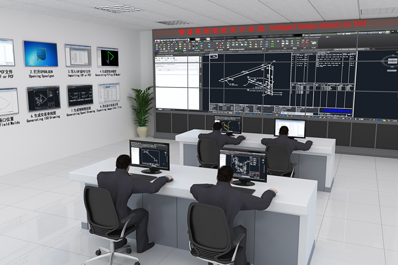 六、 性能特点:安装在总控室的服务器中,负责将《管道预制智能设计系统》的详图设计信息导入其中;通过《管道预制现场WiFi系统》实现与《管道预制智能控制系统》的沟通与协调,指挥《管道预制智能显示系统》进行现场信息显示;指挥《管道预制远程APP系统》进行信息推送